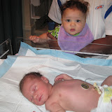 After waiting 6 months and 9 days from me being born, Aidan Trevor Wolsey arrived Saturday and I got to meet my cousin. He mostly lied around and slept. He did get a bath. Mommy caught a little of it on video. You should check out the video (Mommy is not a very good videographer so please forgive her). Auntie Katie looks great. You would never have known she had just had a baby. She was walking around and eating normal food. She hadn't slept in over 24 hours, but you would never know it. Uncle Kerlan also was very happy and talked with his son. As you can tell I was super excited to meet my cousin. I talked all day about him and then finally got to meet him at 3:00. Mommy made us leave by 5:00 so we could drive home and get me to bed on time.